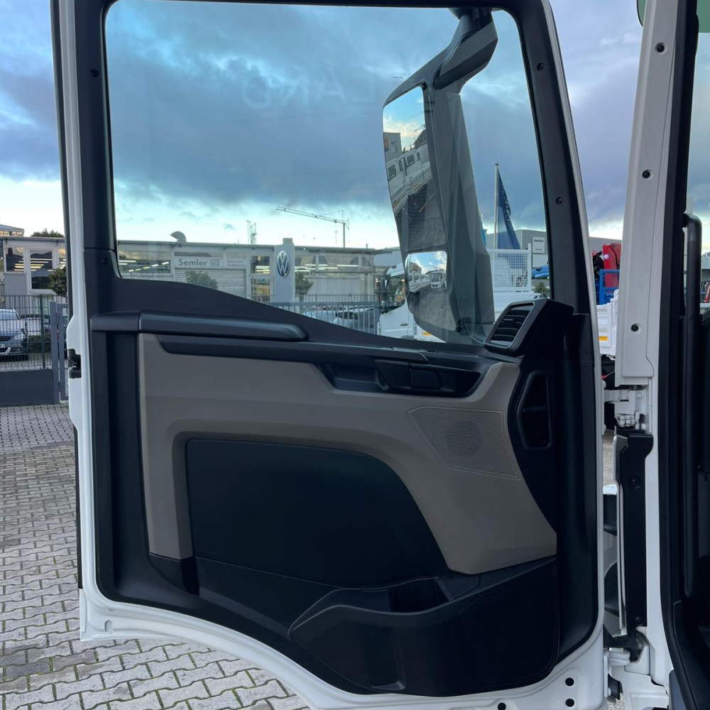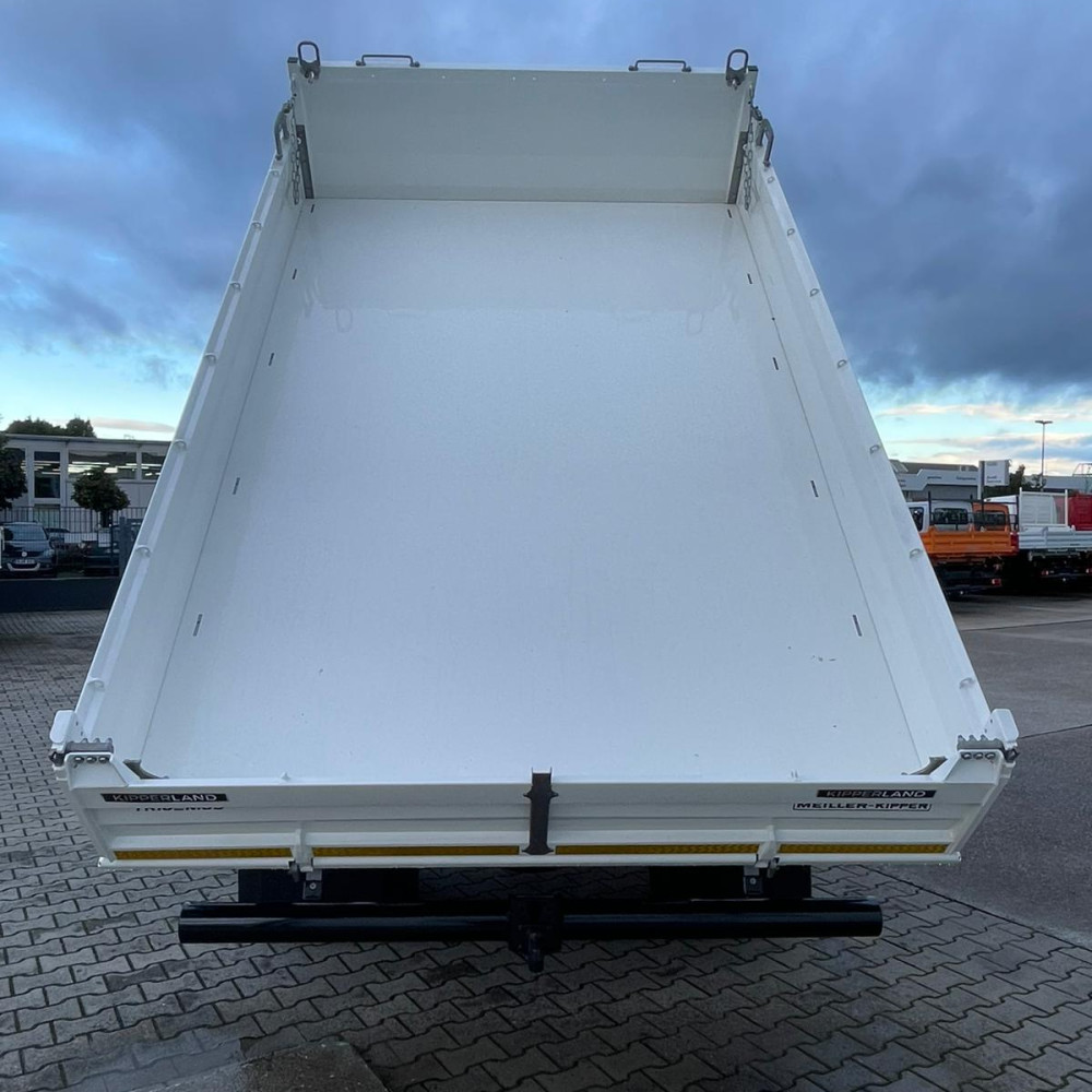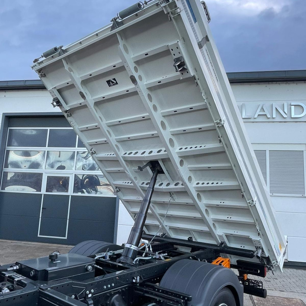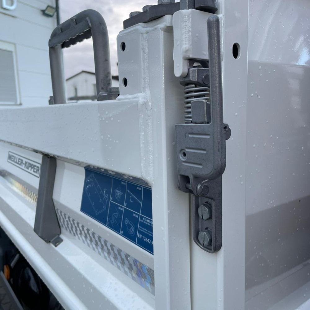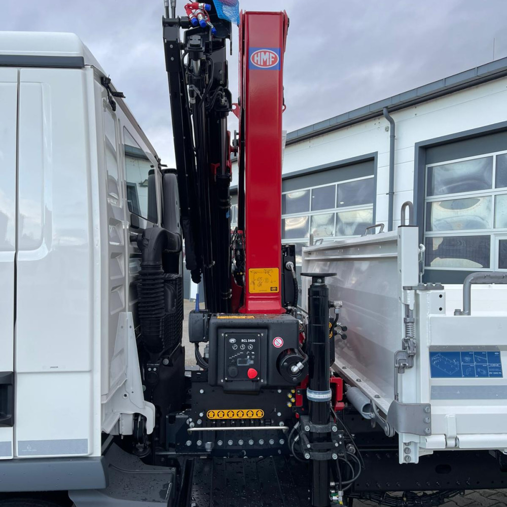 Vielseitiger Dreiseitenkipper mit leistungsstarkem HMF 810 K3 Ladekran. Ideal für präzise Hebe- und Ladeaufgaben, kombiniert mit robuster Kippfunktion für flexible Einsätze auf der Baustelle.