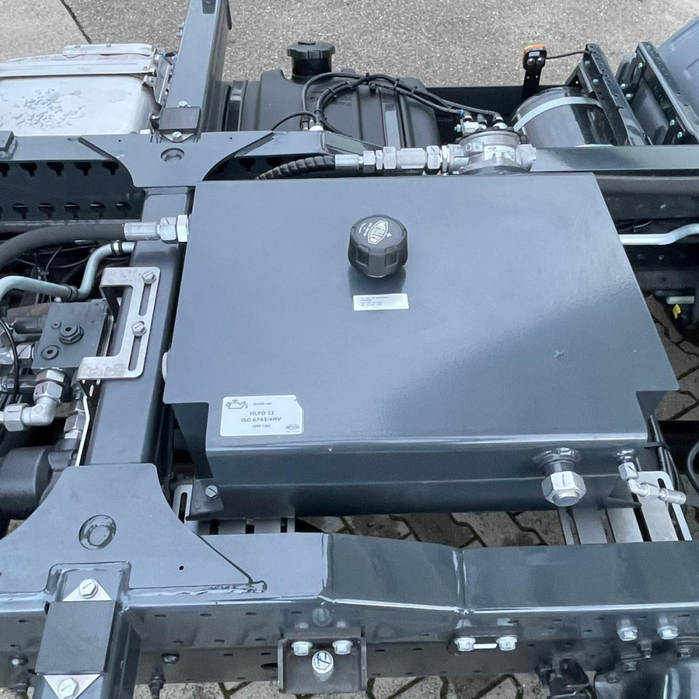 - Hydraulikölbehälter mit speziellen Schwallblechen und schwingungsgedämpftem Befestigungssystem